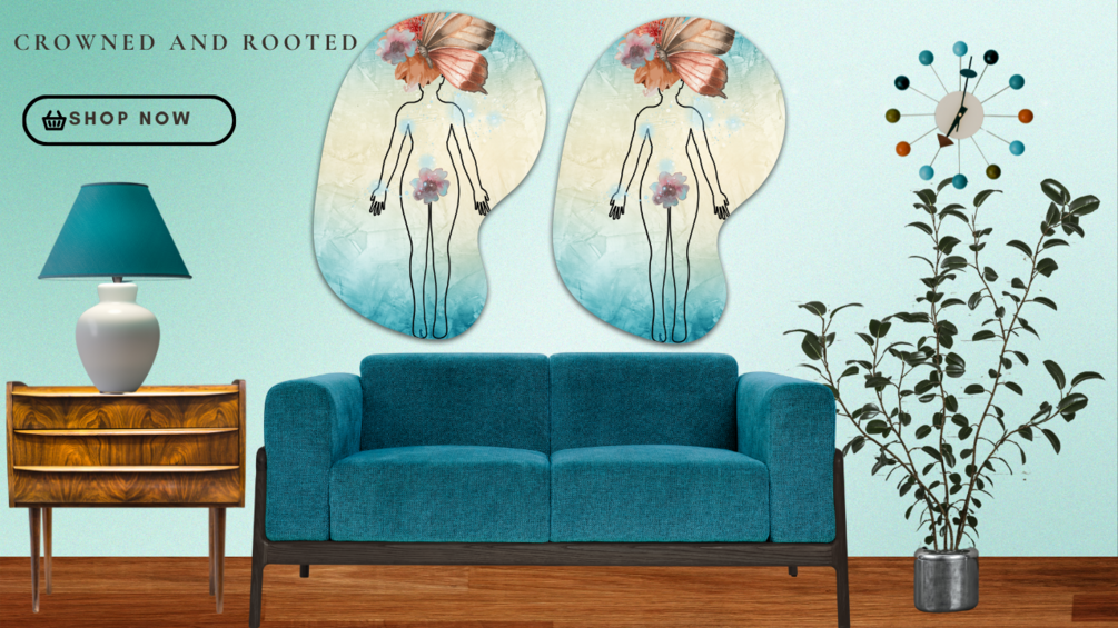 An ode to transformation, this digital artwork captures the sacred journey of emergence. With a bold butterfly crown and a soft central bloom, the silhouette becomes a symbol of rising — grounded, yet ascending.